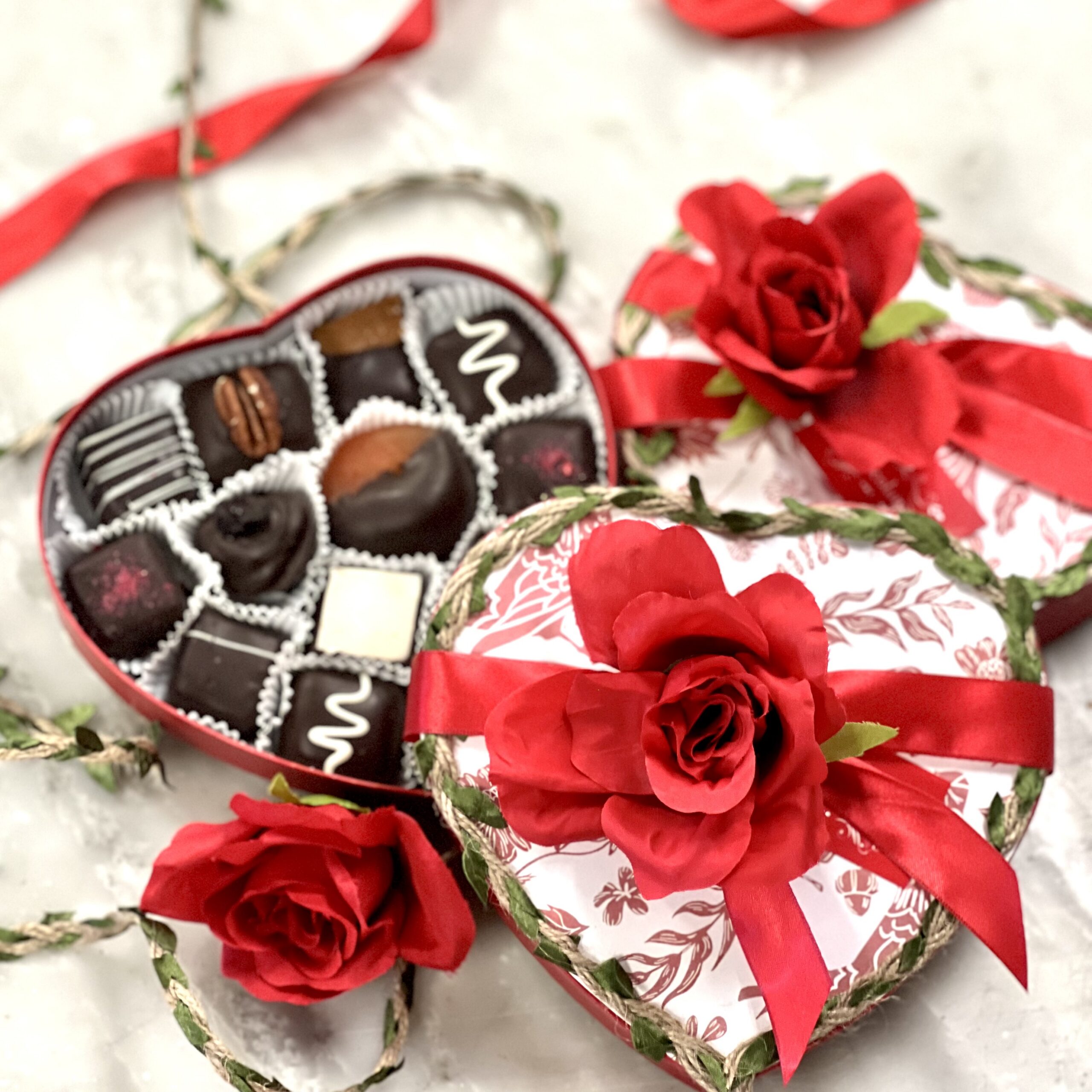 Assorted Miniatures. Includes: Pomegranate Fig Bar, Rosemary Marcona Almond Rounds, Cherry Clusters, Sierra Blanca, Sunset Orange Chile, Mimosa, Dipped English Toffee, Raspberry Bar, Dipped Apricot, Sea Salt Caramel, and Don Juan Pecan Caramel. 15 pieces, Approx. 8 oz.
